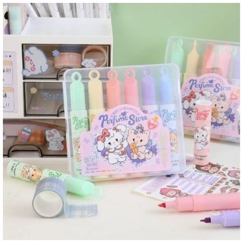 ¡Haz que cada tarea sea mágica con este Set X6 Resaltador de Perfume Store! Este set de papelería es la elección ideal para padres que buscan un regalo de cumpleaños o "souvenir" que sea útil, colorido, oloroso e impresionante para los invitados. Con diseños vibrantes, estos resaltadores no solo sirven para estudiar, sino que transforman el escritorio en un mundo de fantasía, agrega olor dulce a tu vida.