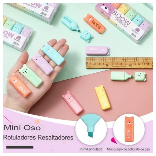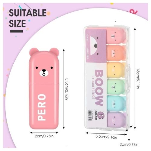 ¡Haz que cada tarea sea mágica con este Set X6 Resaltadores Ositos Boow! Este kit de papelería es la elección ideal para padres que buscan un regalo de cumpleaños o "souvenir" que sea útil, colorido e impresionante para los invitados. Con diseños vibrantes, estos resaltadores no solo sirven para estudiar, sino que transforman el escritorio en un mundo de fantasía.
